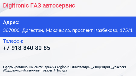 Digitronic ГАЗ, автосервис по адресу 367006, Дагестан, Махачкала, проспект Казбекова, 175/1 в дальнейшем Организация, размещена в следующих категориях: