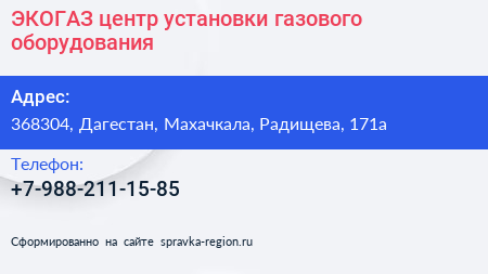 ЭКОГАЗ, центр установки газового оборудования по адресу 368304, Дагестан, Махачкала, Радищева, 171а в дальнейшем Организация, размещена в следующих категориях: