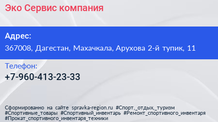 Эко-Сервис, компания по адресу 367008, Дагестан, Махачкала, Арухова 2-й тупик, 11 в дальнейшем Организация, размещена в следующих категориях: