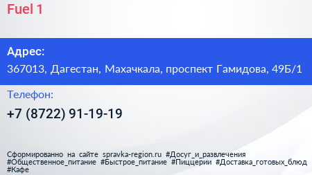 Fuel 1 по адресу 367013, Дагестан, Махачкала, проспект Гамидова, 49Б/1 в дальнейшем Организация, размещена в следующих категориях: