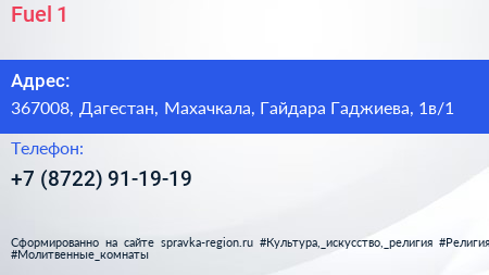 Fuel 1 по адресу 367008, Дагестан, Махачкала, Гайдара Гаджиева, 1в/1 в дальнейшем Организация, размещена в следующих категориях: