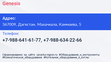 Genesis по адресу 367009, Дагестан, Махачкала, Каммаева, 5 в дальнейшем Организация, размещена в следующих категориях: