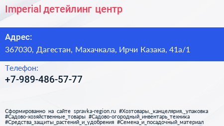 Imperial, детейлинг центр по адресу 367030, Дагестан, Махачкала, Ирчи Казака, 41а/1 в дальнейшем Организация, размещена в следующих категориях: