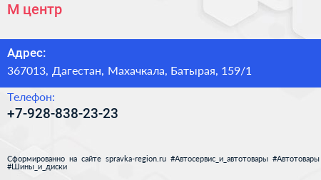 М-центр по адресу 367013, Дагестан, Махачкала, Батырая, 159/1 в дальнейшем Организация, размещена в следующих категориях: