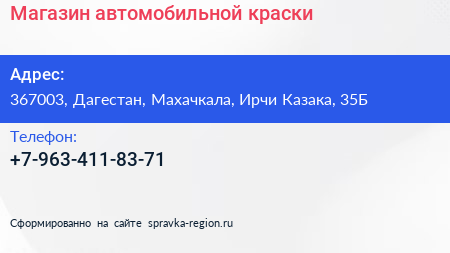 Магазин автомобильной краски по адресу 367003, Дагестан, Махачкала, Ирчи Казака, 35Б в дальнейшем Организация, размещена в следующих категориях: