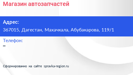 Магазин автозапчастей по адресу 367015, Дагестан, Махачкала, Абубакарова, 119/1 в дальнейшем Организация, размещена в следующих категориях: