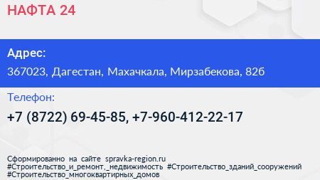 НАФТА 24 по адресу 367023, Дагестан, Махачкала, Мирзабекова, 82б в дальнейшем Организация, размещена в следующих категориях:
