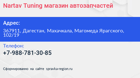 Nartav Tuning, магазин автозапчастей по адресу 367911, Дагестан, Махачкала, Магомеда Ярагского, 102/19 в дальнейшем Организация, размещена в следующих категориях: