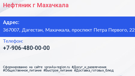 Нефтяник, г. Махачкала по адресу 367007, Дагестан, Махачкала, проспект Петра Первого, 22 в дальнейшем Организация, размещена в следующих категориях: