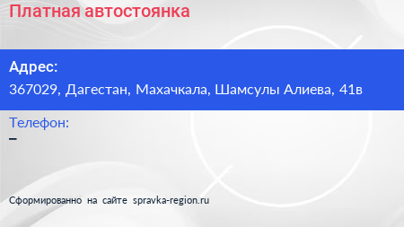 Платная автостоянка по адресу 367029, Дагестан, Махачкала, Шамсулы Алиева, 41в в дальнейшем Организация, размещена в следующих категориях: