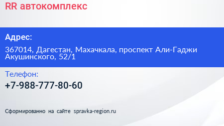 RR, автокомплекс по адресу 367014, Дагестан, Махачкала, проспект Али-Гаджи Акушинского, 52/1 в дальнейшем Организация, размещена в следующих категориях:
