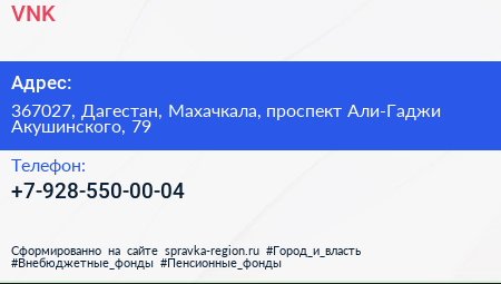 VNK по адресу 367027, Дагестан, Махачкала, проспект Али-Гаджи Акушинского, 79 в дальнейшем Организация, размещена в следующих категориях: