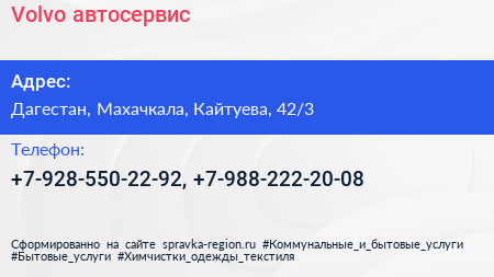 Volvo, автосервис по адресу Дагестан, Махачкала, Кайтуева, 42/3 в дальнейшем Организация, размещена в следующих категориях: