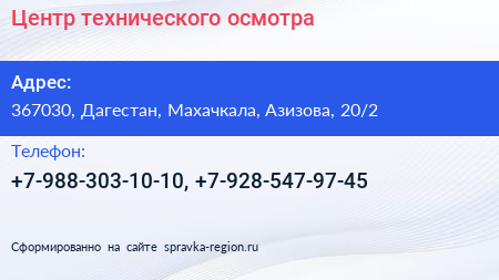Центр технического осмотра по адресу 367030, Дагестан, Махачкала, Азизова, 20/2 в дальнейшем Организация, размещена в следующих категориях: