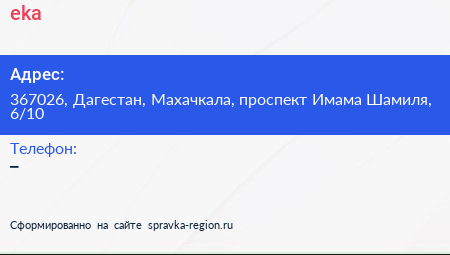 eka по адресу 367026, Дагестан, Махачкала, проспект Имама Шамиля, 6/10 в дальнейшем Организация, размещена в следующих категориях:
