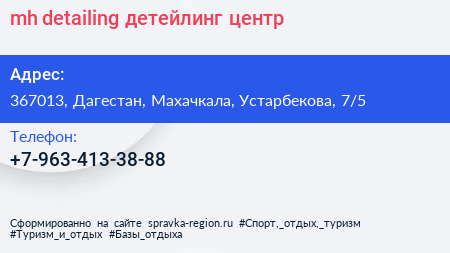 mh detailing, детейлинг центр по адресу 367013, Дагестан, Махачкала, Устарбекова, 7/5 в дальнейшем Организация, размещена в следующих категориях: