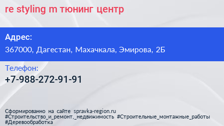 re-styling-m, тюнинг-центр по адресу 367000, Дагестан, Махачкала, Эмирова, 2Б в дальнейшем Организация, размещена в следующих категориях: