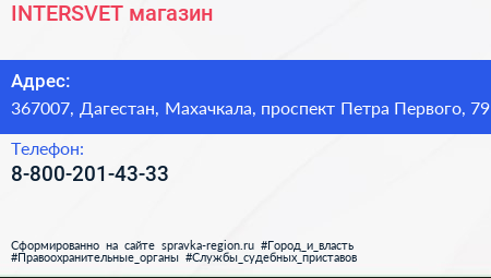INTERSVET, магазин по адресу 367007, Дагестан, Махачкала, проспект Петра Первого, 79 в дальнейшем Организация, размещена в следующих категориях: