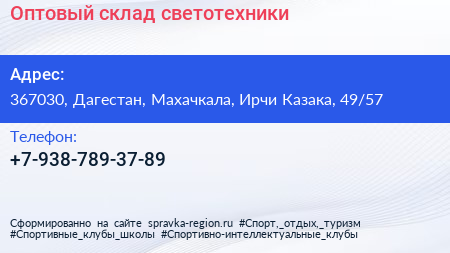 Оптовый склад светотехники по адресу 367030, Дагестан, Махачкала, Ирчи Казака, 49/57 в дальнейшем Организация, размещена в следующих категориях: