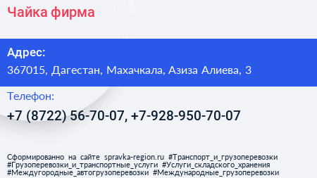 Чайка, фирма по адресу 367015, Дагестан, Махачкала, Азиза Алиева, 3 в дальнейшем Организация, размещена в следующих категориях: