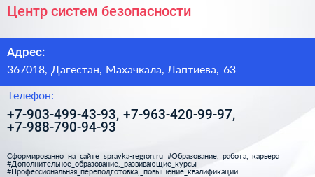 Центр систем безопасности по адресу 367018, Дагестан, Махачкала, Лаптиева, 63 в дальнейшем Организация, размещена в следующих категориях: