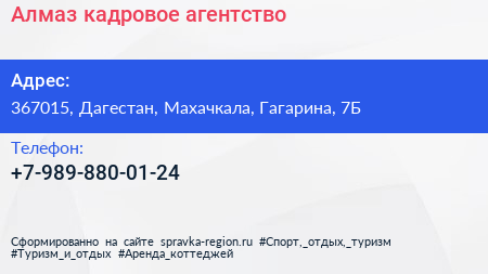 Алмаз, кадровое агентство по адресу 367015, Дагестан, Махачкала, Гагарина, 7Б в дальнейшем Организация, размещена в следующих категориях: