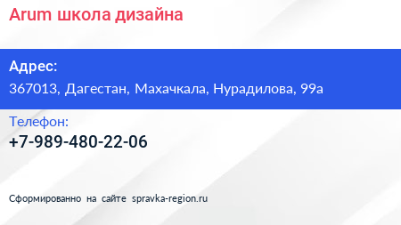 Arum, школа дизайна по адресу 367013, Дагестан, Махачкала, Нурадилова, 99а в дальнейшем Организация, размещена в следующих категориях: