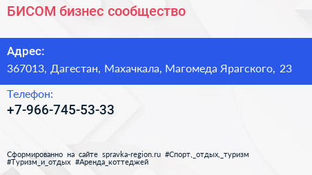 БИСОМ, бизнес сообщество по адресу 367013, Дагестан, Махачкала, Магомеда Ярагского, 23 в дальнейшем Организация, размещена в следующих категориях: