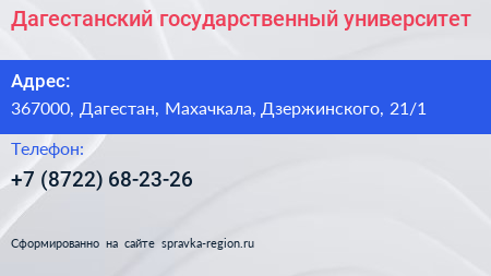 Дагестанский государственный университет по адресу 367000, Дагестан, Махачкала, Дзержинского, 21/1 в дальнейшем Организация, размещена в следующих категориях: