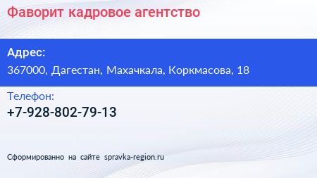 Фаворит, кадровое агентство по адресу 367000, Дагестан, Махачкала, Коркмасова, 18 в дальнейшем Организация, размещена в следующих категориях: