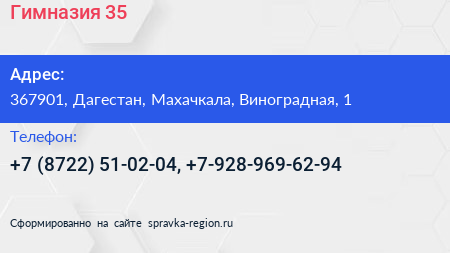 Гимназия №35 по адресу 367901, Дагестан, Махачкала, Виноградная, 1 в дальнейшем Организация, размещена в следующих категориях: