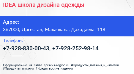 IDEA, школа дизайна одежды по адресу 367000, Дагестан, Махачкала, Дахадаева, 118 в дальнейшем Организация, размещена в следующих категориях: