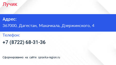 Лучик по адресу 367000, Дагестан, Махачкала, Дзержинского, 4 в дальнейшем Организация, размещена в следующих категориях: