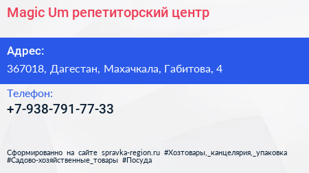 Magic Um, репетиторский центр по адресу 367018, Дагестан, Махачкала, Габитова, 4 в дальнейшем Организация, размещена в следующих категориях: