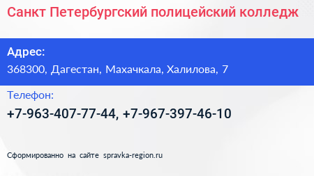 Санкт-Петербургский полицейский колледж по адресу 368300, Дагестан, Махачкала, Халилова, 7 в дальнейшем Организация, размещена в следующих категориях: