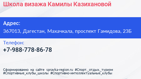 Школа визажа Камилы Казихановой по адресу 367013, Дагестан, Махачкала, проспект Гамидова, 23Б в дальнейшем Организация, размещена в следующих категориях: