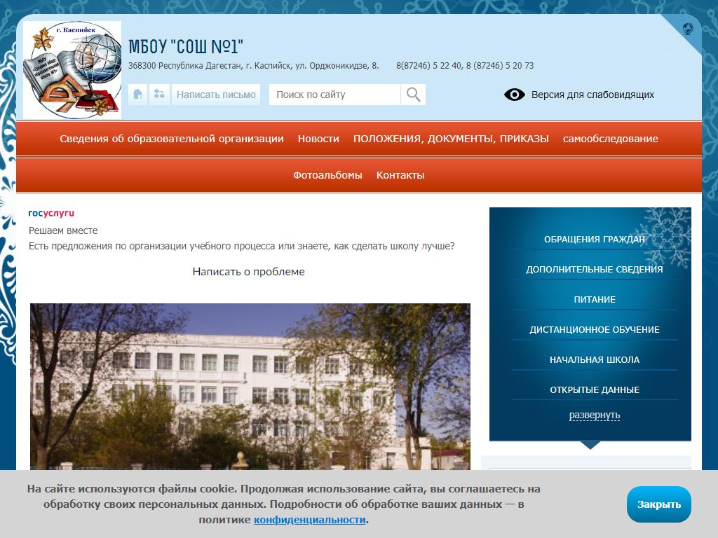 Средняя общеобразовательная школа №1 по адресу 368300, Дагестан, Махачкала, Орджоникидзе, 8 в дальнейшем Организация, размещена в следующих категориях:
