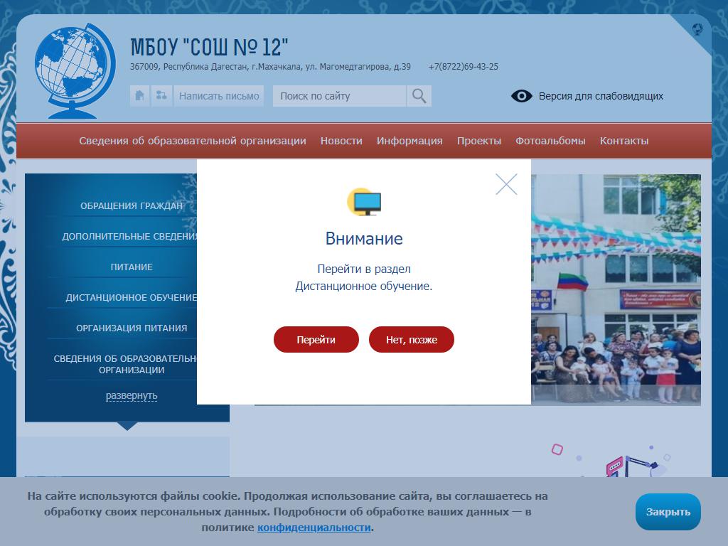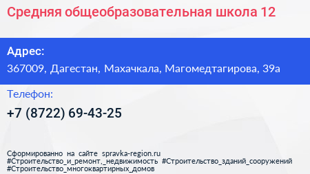 Средняя общеобразовательная школа №12 по адресу 367009, Дагестан, Махачкала, Магомедтагирова, 39а в дальнейшем Организация, размещена в следующих категориях: