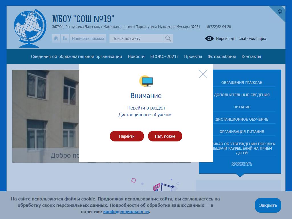 Средняя общеобразовательная школа №19 по адресу 367904, Дагестан, Махачкала, посёлок Тарки, 259 в дальнейшем Организация, размещена в следующих категориях: