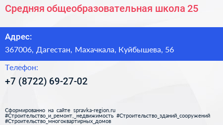 Средняя общеобразовательная школа №25 по адресу 367006, Дагестан, Махачкала, Куйбышева, 56 в дальнейшем Организация, размещена в следующих категориях: