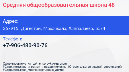 Средняя общеобразовательная школа №48 по адресу 367915, Дагестан, Махачкала, Хаппалаева, 55/4 в дальнейшем Организация, размещена в следующих категориях: