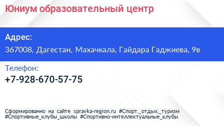 Юниум, образовательный центр по адресу 367008, Дагестан, Махачкала, Гайдара Гаджиева, 9в в дальнейшем Организация, размещена в следующих категориях: