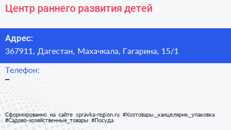 Центр раннего развития детей по адресу 367911, Дагестан, Махачкала, Гагарина, 15/1 в дальнейшем Организация, размещена в следующих категориях: