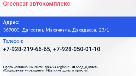 Greencar, автокомплекс по адресу 367000, Дагестан, Махачкала, Дахадаева, 23/1 в дальнейшем Организация, размещена в следующих категориях: