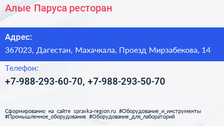 Алые Паруса, ресторан по адресу 367023, Дагестан, Махачкала, Проезд Мирзабекова, 14 в дальнейшем Организация, размещена в следующих категориях: