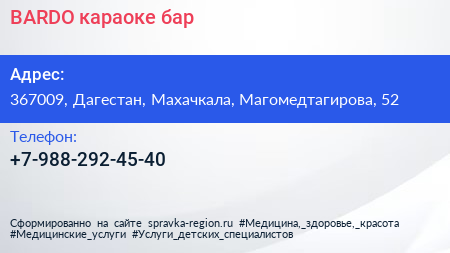 BARDO, караоке-бар по адресу 367009, Дагестан, Махачкала, Магомедтагирова, 52 в дальнейшем Организация, размещена в следующих категориях: