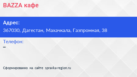 BAZZA, кафе по адресу 367030, Дагестан, Махачкала, Газпромная, 38 в дальнейшем Организация, размещена в следующих категориях:
