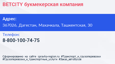 BETCITY, букмекерская компания по адресу 367026, Дагестан, Махачкала, Ташкентская, 30 в дальнейшем Организация, размещена в следующих категориях: