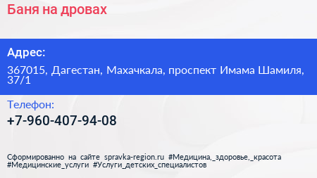 Баня на дровах по адресу 367015, Дагестан, Махачкала, проспект Имама Шамиля, 37/1 в дальнейшем Организация, размещена в следующих категориях: