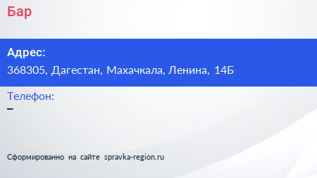 Бар по адресу 368305, Дагестан, Махачкала, Ленина, 14Б в дальнейшем Организация, размещена в следующих категориях: